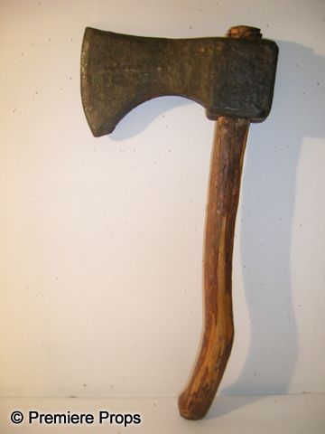 A screen used battle axe from 2006's 'Underworld: Evolution.' The axe was used to perform safe stunts while battling with the Lycans. The handle is made from a somewhat uneven piece of wood, making it look as though it was carved from a tree branch, and features an aged looking, painted hard rubber axe head. (measures approx. 20" long) Oversized item. Additional Postage Required.