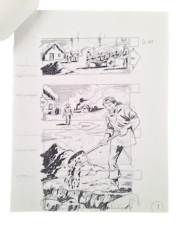 Underworld: Evolution Production Storyboards with three pages of action packed detailed illustrations for scene 167 which depicts a midieval burial rite with dozens of bodies herded into a mass grave. Two of the three pages contain four storyboard panels each while the last page contains one panel (8.5x11).