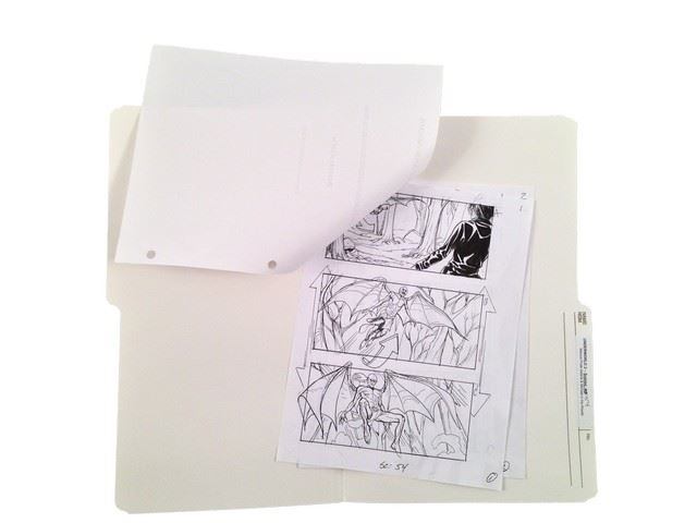 Underworld: Evolution Production Storyboards with four pages of action packed detailed illustrations for scene 54 in which a winged Marcus (Tony Curran) confronts Selene (Kate Beckinsale) and Michael (Scott Speedman) in the woods.Three of the four pages contain three panels each while the last page contains one panel (8.5x11).