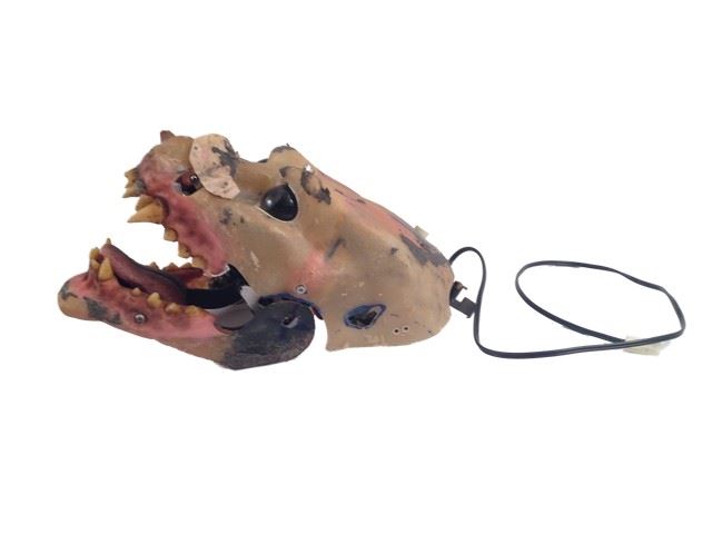 Screen used Lycan animatronic head frame made of resin. Has black plastic eyes with grey iris and black pupil. foam tongue, and rubber teeth. Used in Underworld: Rise of the Lycans, Awakening and Blood Wars. (Approx. 7" x 12")