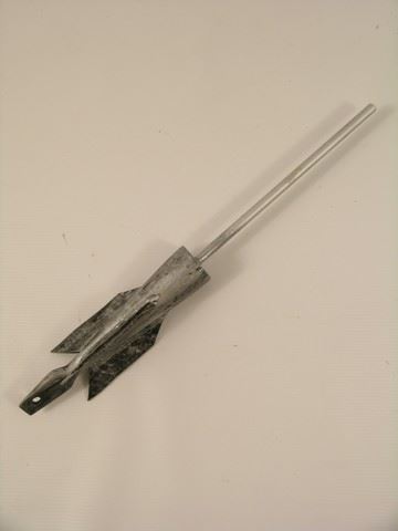 Painted silver arrow without arrowhead. (approx. 14 1/2" long).