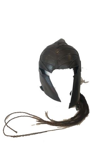 Screen used, plastic 'Death Dealer' helmet with face guard and long partially braided synthetic hair, insignia on both sides of the helmet. (13x11x8).