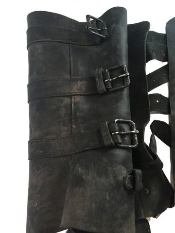 Screen worn, leg armour, made of leather and suede, buckles around calf area. one for each leg. (15x10)