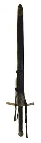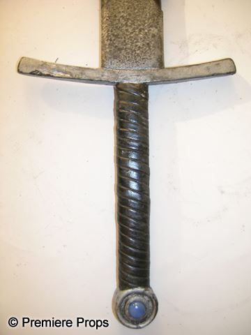 From 2009's 'Underworld: Rise of the Lycans,' this is one of the screen used, Death Dealer swords from the film. The sword is made of hard rubber and plastic material and features a carved handle with jeweled tip. The scabbard is melded to the sword and does not come off. (measures approx. 43" long) Oversized item. Additional Postage Required.
