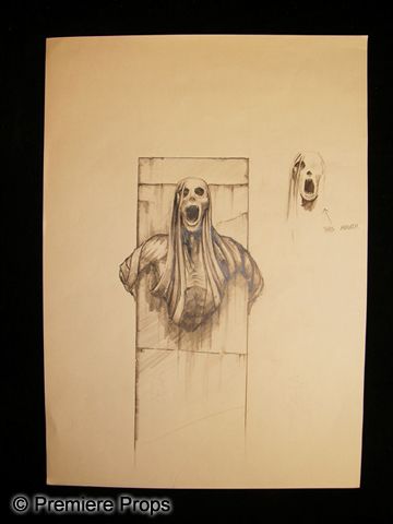 When creating a complete new world, as the producers have to do in the "Underworld" series, you need an army of specialized artists since everything must be reinvented. This is an original hand drawn production sketch depicting a tortured soul used for inspiration in "Underworld: Rise of the Lycans" (2009) . The paper is slightly wrinkled and bent at the edges. (16.5x11.75)