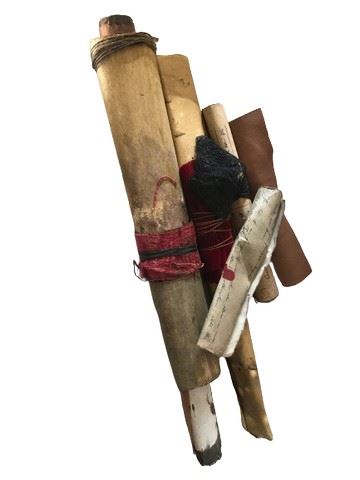 Great Hall thin rope tied paper scroll, 5 rolls in all. (approx. 13" long)