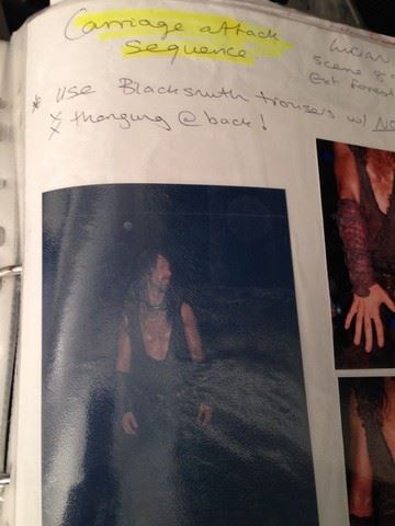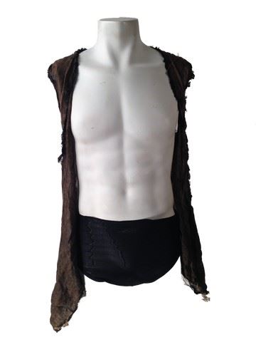 Lucian Blacksmith (Michael Sheen) screen worn, hero, custom made tawny shirt made into a bodysuit with customer made, broken down leather trousers ("Lucien Wet" written inside the tag)