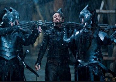 Lycan's screen used, hero, brown wood with three bows and three arrows x-bow. (approx. 26 1/2" long)