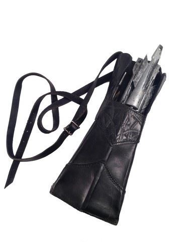 Leather quiver with plastic projectiles, one of which has feathers. Quiver (15.5x7x2.5") , Projectiles (between 11 - 15")