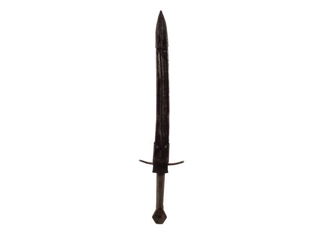 Screen used, black Death Dealer sword sheath and hilt with half blade (made of resin). Detachable, resin hilt, leather sheath. (measures approx. 28") (hilt measures approx 15")