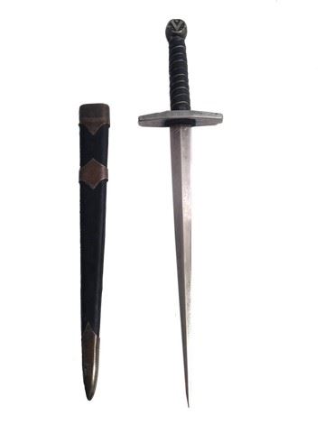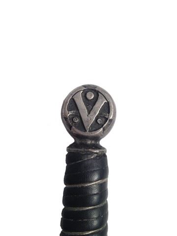 Viktor (Bill Nighy) screen used dagger with leather sheath. Black and silver dagger with black wrapping around grip and "V" emblem at pommel, blade made of resin material. (approx 17"x4").