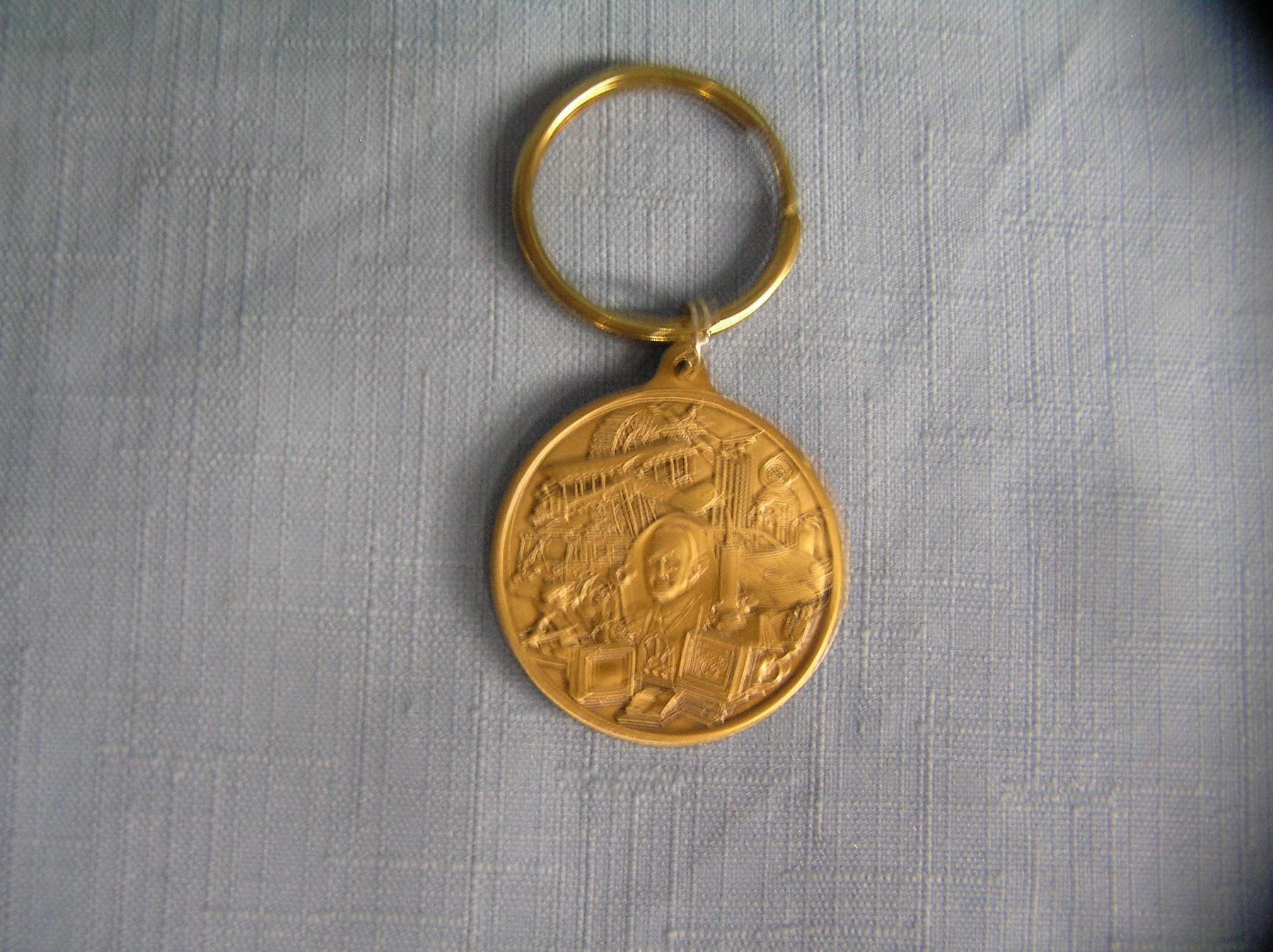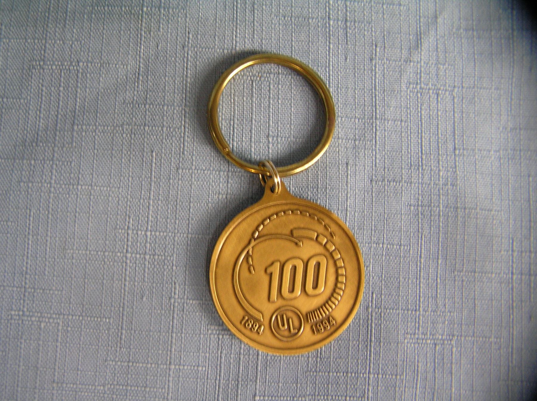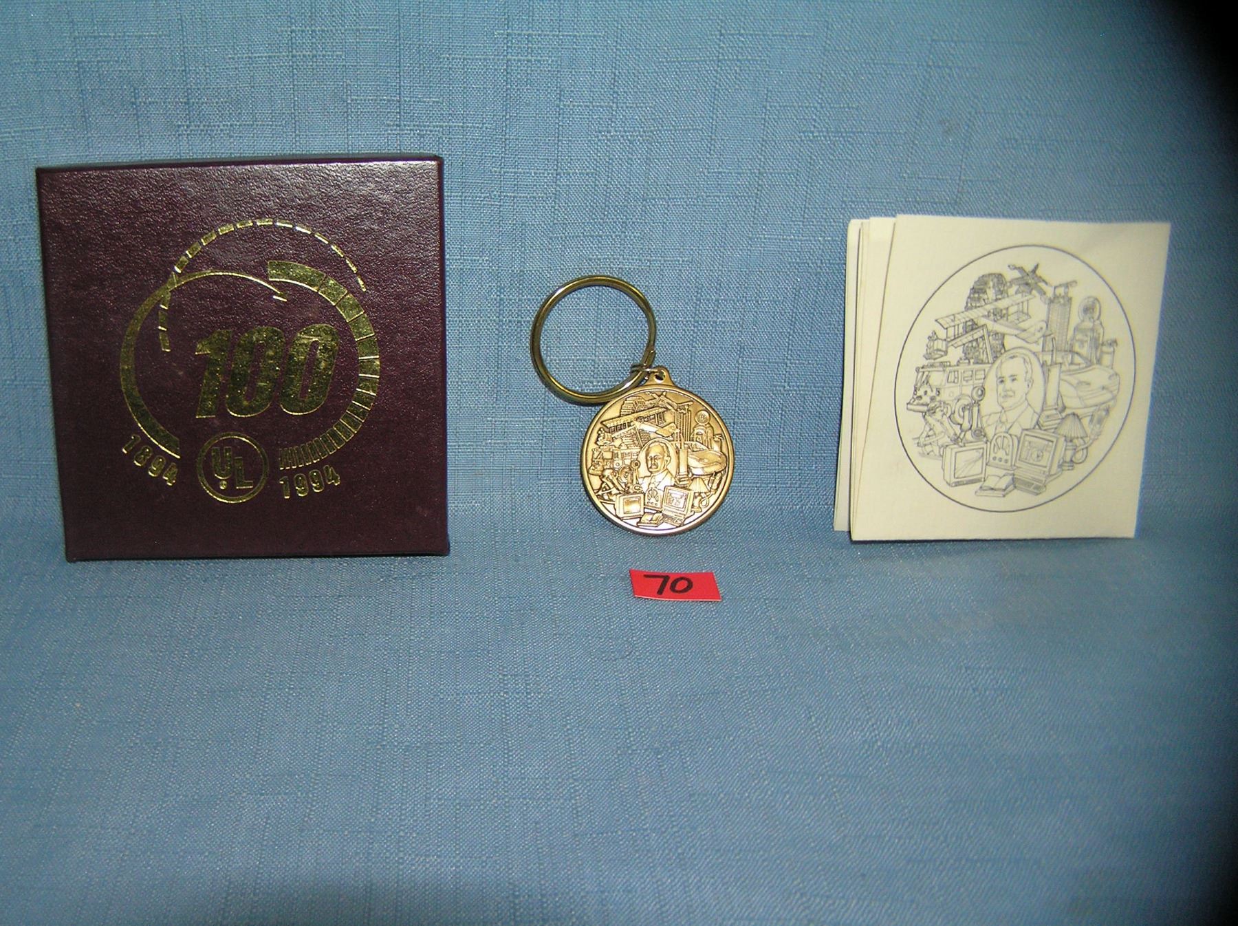 UL Underwriter's lavatory solid brass 100 year anniversary bronze commemorative medallion/key chain 1894 to 1994 with original brochure and box est. value $40.00-$45.00