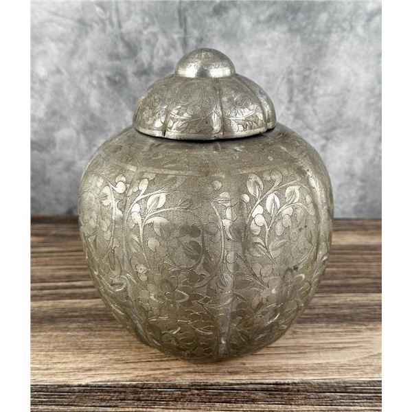 Antique Chinese Pewter Melon Form Ginger Jar787 - Antique Chinese Pewter Melon Form Ginger Jar