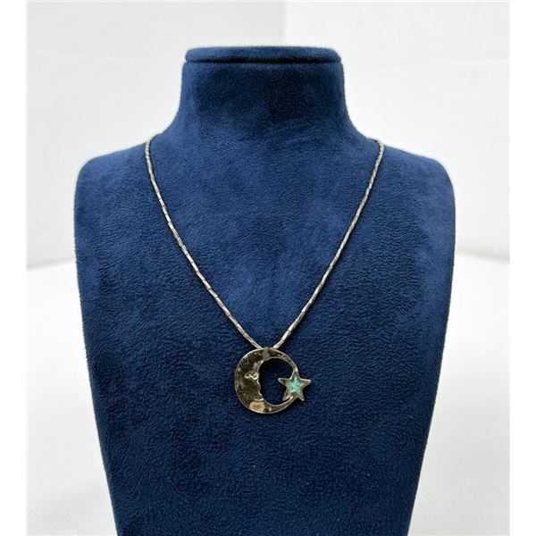 Zuni Inlaid Sterling Silver Moon Necklace1035 - Zuni Inlaid Sterling Silver Moon Necklace