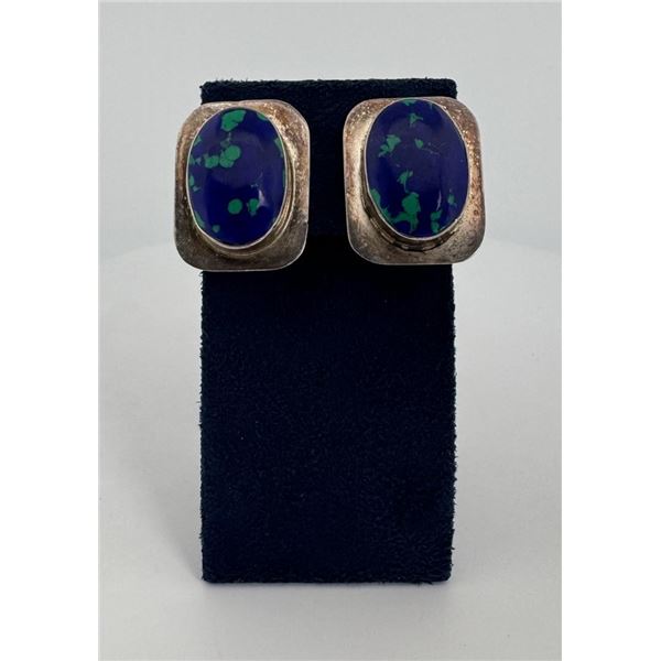 Taxco Mexico Sterling Silver Azurite Earrings231 - Taxco Mexico Sterling Silver Azurite Earrings
