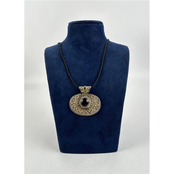 Indonesian Sterling Silver Peridot Onyx Necklace266 - Indonesian Sterling Silver Peridot Onyx Necklace