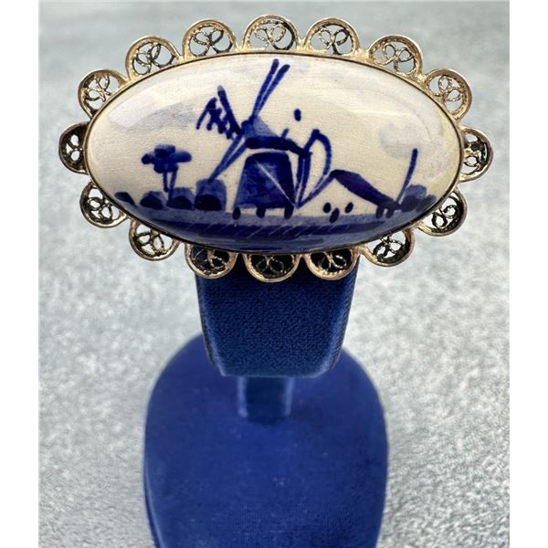 Dutch Delft Pottery .835 Silver Brooch1036 - Dutch Delft Pottery .835 Silver Brooch