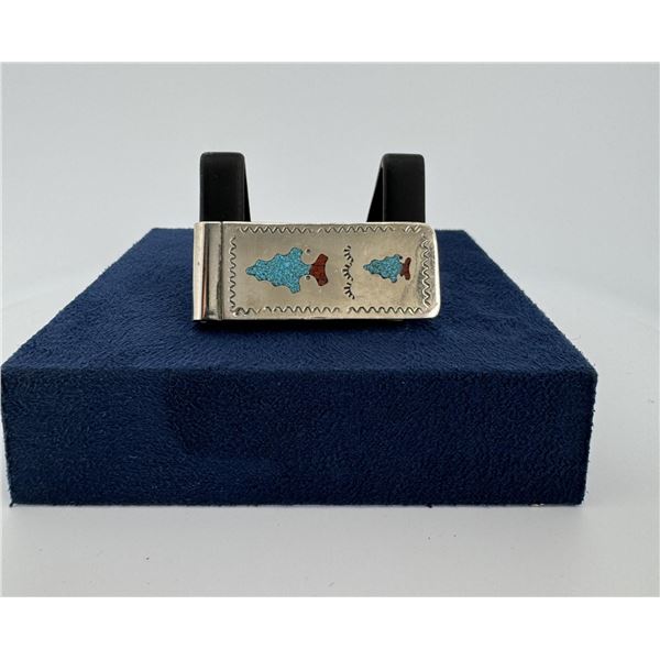 Zuni Chip Inlaid Money Clip1368 - Zuni Chip Inlaid Money Clip