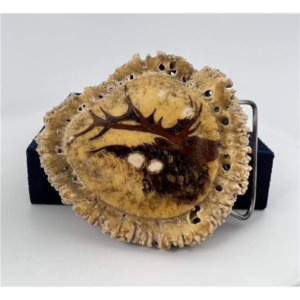 Montana Bull Elk Horn Painted Belt Buckle1371 - Montana Bull Elk Horn Painted Belt Buckle