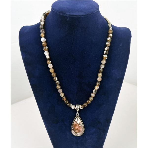 Nice Necklace. Agate Beads. Sterling Silver. 12 3/8" long.