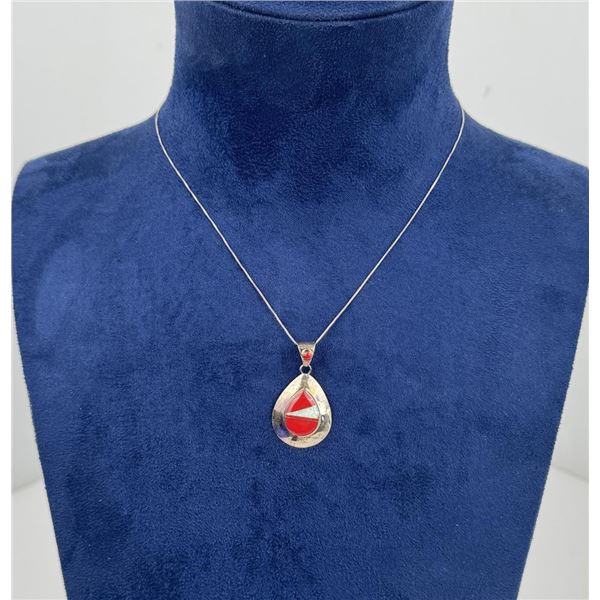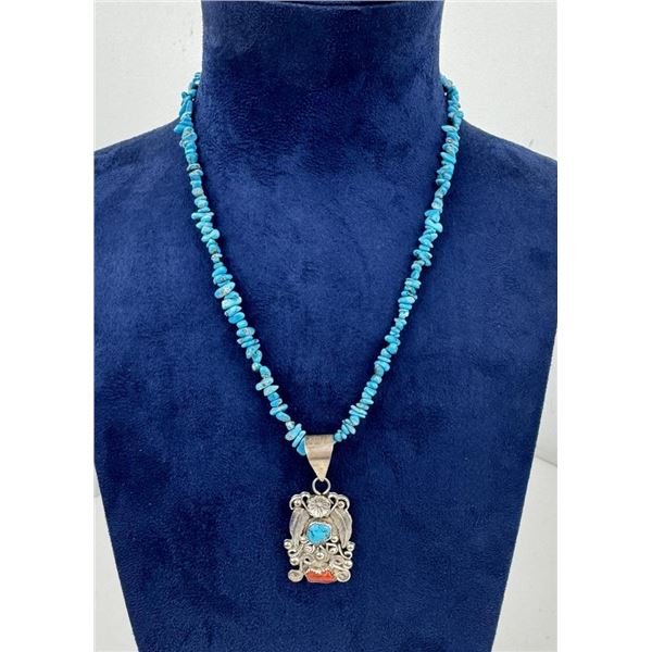 Navajo Sterling Silver Turquoise Coral Necklace1376 - Navajo Sterling Silver Turquoise Coral Necklace