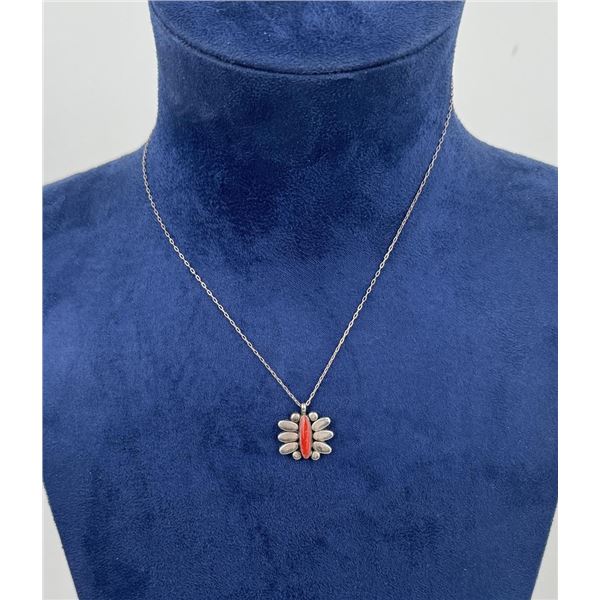 Navajo Sterling Silver Coral Necklace1377 - Navajo Sterling Silver Coral Necklace