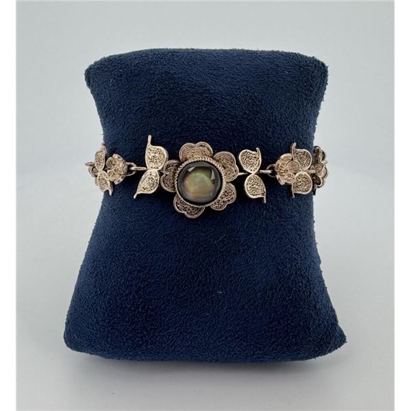 Sterling Silver Filigree Mother of Pearl Bracelet1380 - Sterling Silver Filigree Mother of Pearl Bracelet