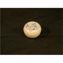 Une boîte globulaire couverte, le couvercle décoré d'un paysage. A globular covered box, the lid decorated with a landscape. $80/120