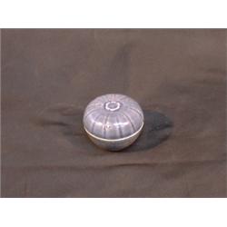 Une boîte globulaire à glaçure bleu cobalt, le couvercle côtelé moulé d'une fleur centrale. A cobalt blue glazed globular covered box, the ribbed lid centered by a moulded flower. $150/250