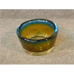 Une coupe en cristal ambré et bleu de Kosta, signée, initialée "L.H." et numérotée 1892. A Kosta amber and blue crystal bowl, signed, intialled: "L.H." and numbered 1892. $80/120