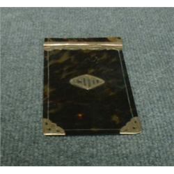 Une couverture de bloc notes en écaille à monture en or jaune. A tortoiseshell paper pad cover with yellow gold mountings. $150/250