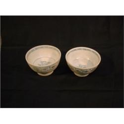 Une paire de bols, l'intérieur à décor fleuri, l'extérieur orné de deux frises, l'une composée de...