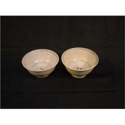 Une paire de bols, l'intérieur orné de cercles concentriques et portant les caractères: "Phuc", (...