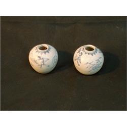 Une paire de petits vases globulaires décorés d'oiseaux aux ailes déployées parmi des branchages. A pair of small globular jars decorated with birds with outstretched wings amongst branches. $150/250