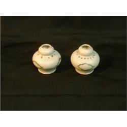 Une paire de vases miniatures en forme de double gourde à décor émaillé brun et vert. A pair of double gourd shaped small bottles with a brown and green enamelled decoration. $150/250