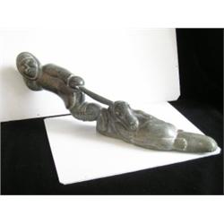 Une sculpture inuit en stéatite représentant un chasseur tirant un ours qu’il vient de tuer, signée,