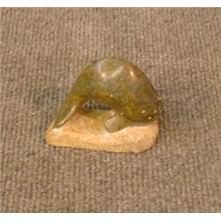Une sculpture inuit en stéatite représentant une baleine, signée. An Inuit stone carving of a whale, signed. $60/80