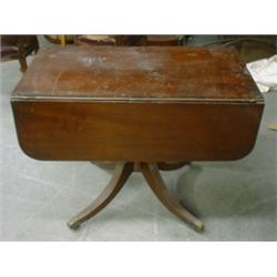 Une table du 19e Siècle en acajou à double abattant, renfermant un tiroir en ceinture et reposant...