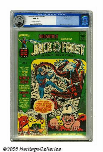 <B>Unearthly Spectaculars #3 Pacific Coast pedigree (Harvey, 1967) CGC NM- 9.2 Off-white to white pages.</B></I> Simon and Kirby, Joe Orlando, Reed Crandall, and Al Williamson art. Square bound giant issue. Overstreet 2005 NM- 9.2 value = $60. CGC census 6/05: 1 in 9.2, none higher.