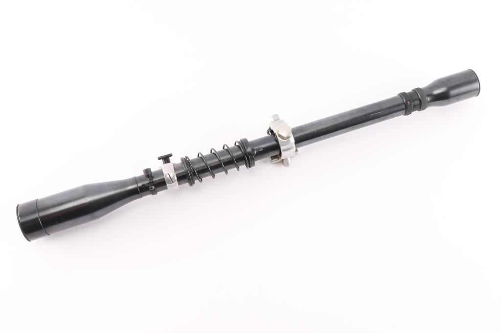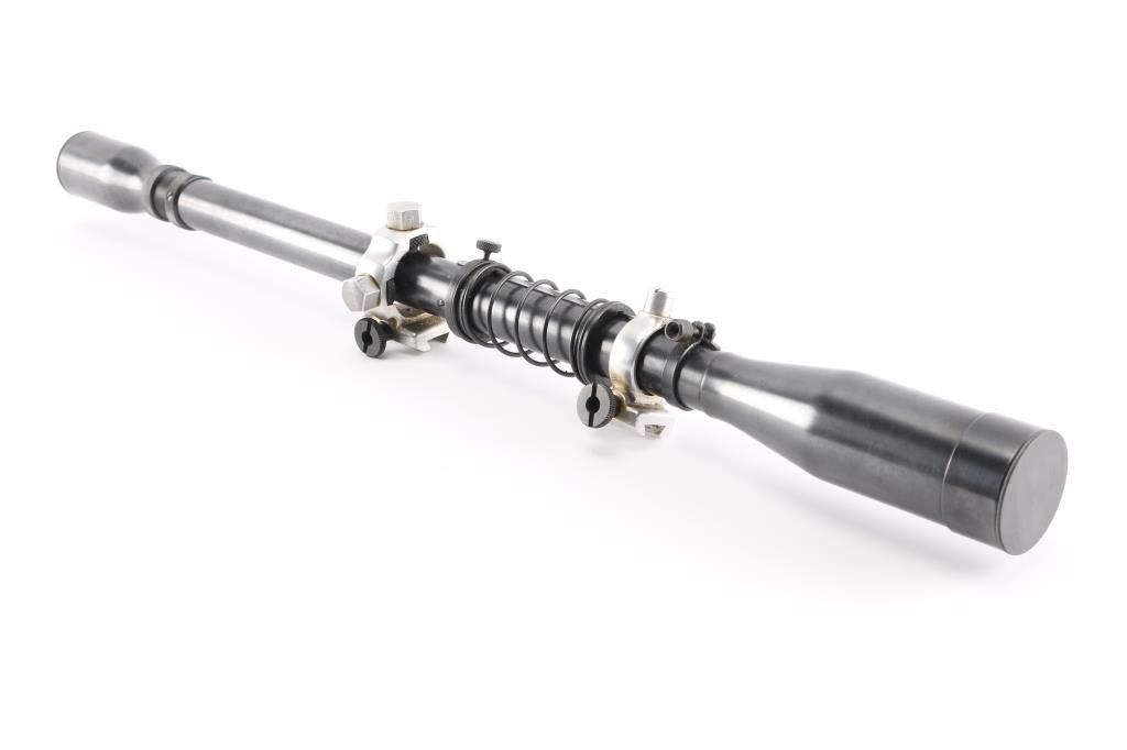 SN: 27565. 10X, 20" length, fine crosshair, both lens caps and mounts. Clear glass.