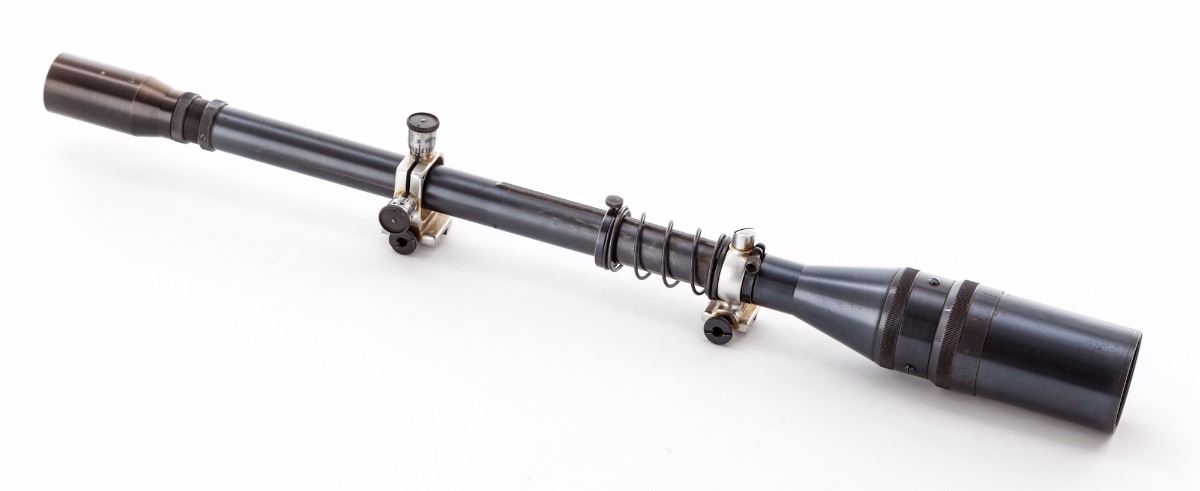Unertl 2'' Ultra Varmint 15X Scope, with calibrated head, #39313, in Unertl adjustable mounts. Scope is in excellent condition with clear optics and medium crosshairs. Est.: $800-$1,200.