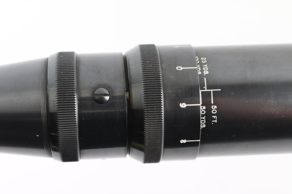in very good condition, some scratches & other signs of use. Has a clear view, with fine crosshairs & center dot. Includes threaded steel lens caps.