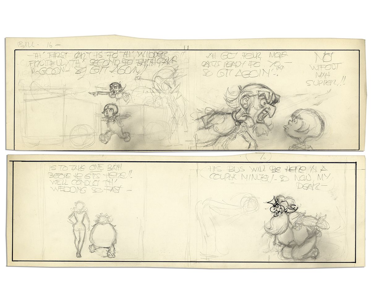 Unfinished Al Capp Comic Strip -- Both Sides Are Illustrated in Pencil With Ink Started to One Side -- 19.75'' x 6.25'' -- Near Fine