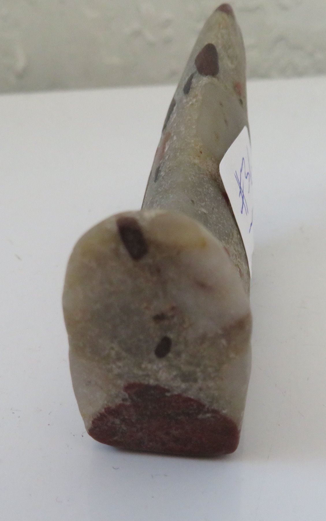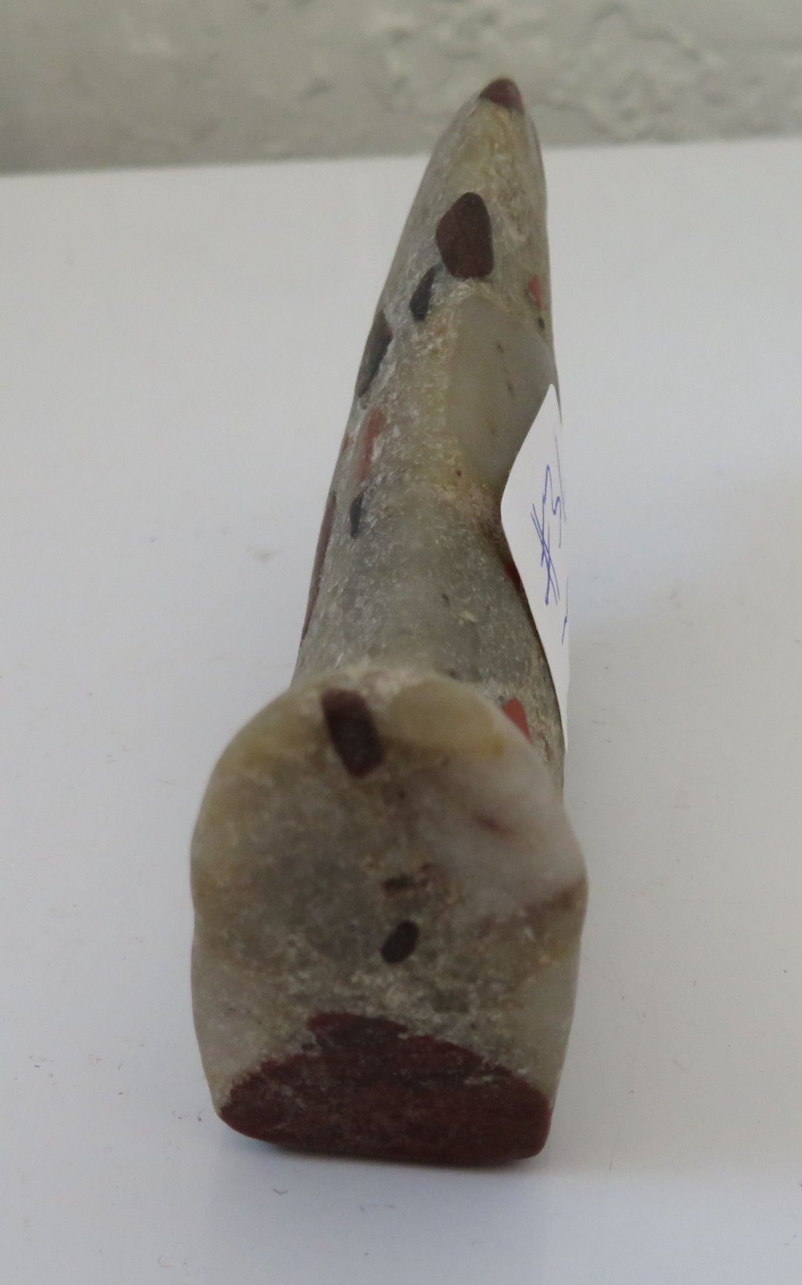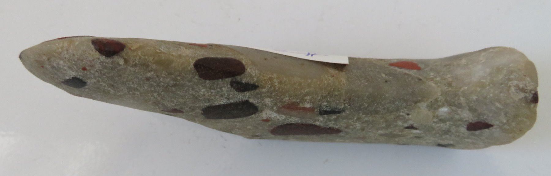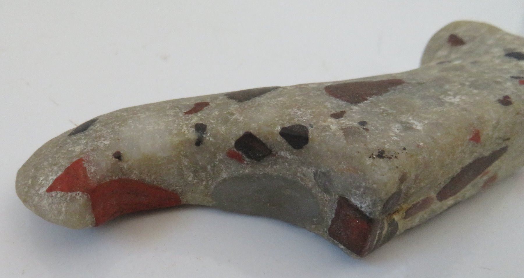 Unfinished Birdstone, historic period. Made of porphory, the item measures 4" x 2" x 1". Scioto County, Ohio. Condition: Undrilled, see images. Shipping: $20.00 w/insurance and signature.