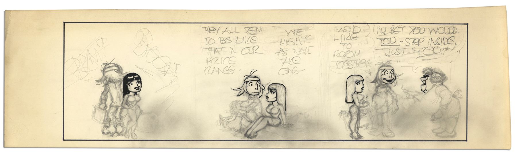 Unfinished Comic Strip by Al Capp in Pencil & Ink -- Undated & Untitled -- 23.5'' x 6.5'' -- Very Good -- From the Al Capp Estate