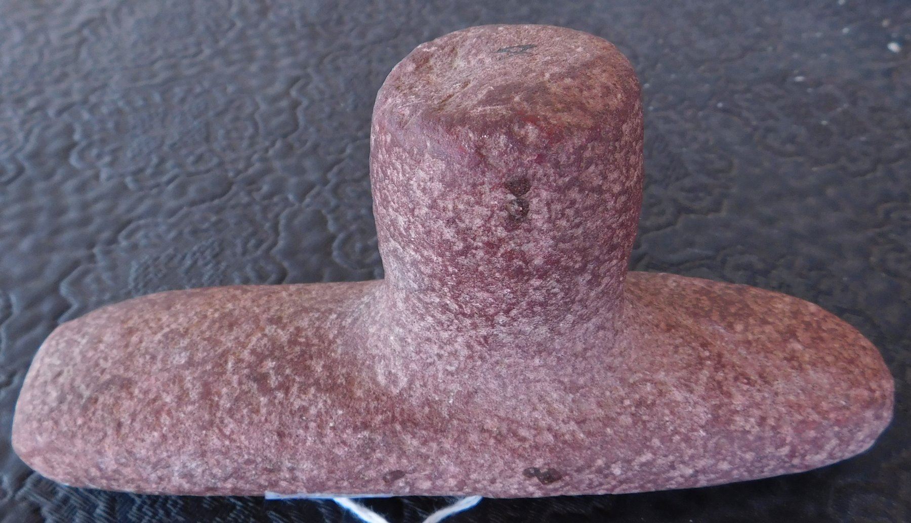 Unfinished Elbow Pipe, pre-historic item. Made of red granite, the item measures 5 1/2" x 3" x 1 1/2". Four corners area of the Southwest USA. Rare find. Condition: Minor nicks and scratches, shovel scratch, see images. Shipping: $16.50 w/insurance and signature.