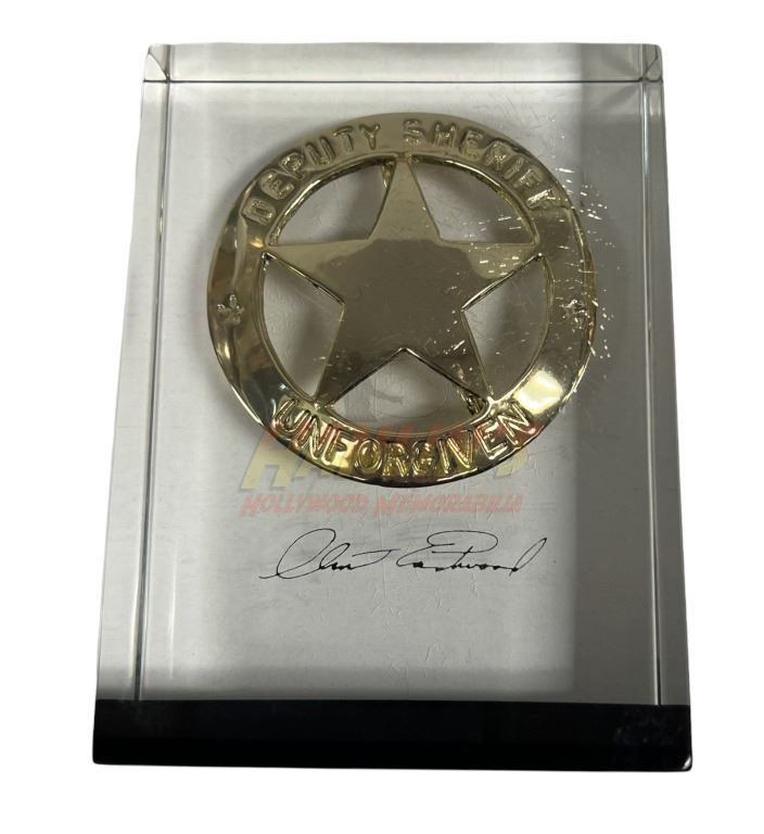 Original Marshal badge given to the cast and crew by Clint Eastwood on the production of the Clint Eastwood directed Revisionist Western film 'Unforgiven' (1992). which tells the story of William Munny, an aging outlaw and killer who takes on one more job, years after he had turned to farming.