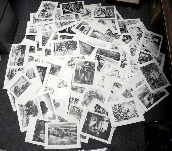 Offered here is an unframed collection of (70) 1939 Etchings and Lithographs from a variety of American artists. The Etchings and Lithographs were done by Optak Printing. Each piece has the artists signature printed in the plate. On the verso of each print, is a brief biography of the artist. The size of the paper is 12 1/2" x 9 1/4" and there conditions range from excellent to mint. A perfect addition to any art lovers collection!