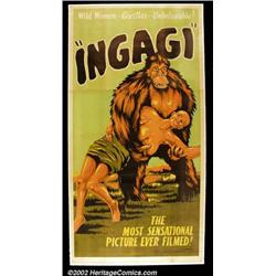 Ungagi (Congo 1930) Three Sheet ( 41' X 81") This was a cheaply made jungle exploitation film released on a territorial basis meaning it went from town to town and was not distributed through a regular distributor. The poster hailed it " as the most sensational picture ever filmed" and I'm sure with these graphics it got its share of paying customers. Fine on Linen. Important notice: We expect to be auctioning lots at the rate of 200-250 per hour. Sometimes eBay Premier live bid software cannot keep up with that pace, so we strongly recommend that you place a realistic proxy bid now as insurance to avoid disappointment. Also please note that all Heritage/CAA lots purchased through eBay Premier carry a 20% Buyer's Premium.