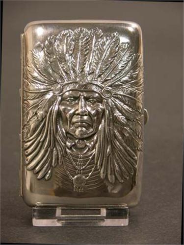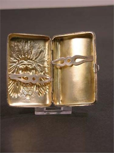 Unger Bros. sterling silver cigarette case with native American Indian motif. Ex. cond.